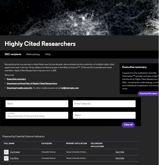 “全球高被引科学家”名单遴选全球高校、研究机构和商业组织中对所在研究领域具有重大和广泛影响的顶尖科学人才,入选该榜单的科学家的论文被引频次在Web of Science中位于同学科、同发表年份的前1%。本年度榜单根据2011年1月至2021年12月的11年间所发表的高被引论文数量遴选得出。