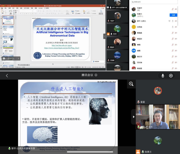 2022年6月24日,受龙8在线登录官网-龙8(中国)张素兰教授的邀请,北京师范大学图形图像与模式识别校级实验室(创建人)主任郭平教授做了线上学术报告,报告题目为“天文大数据分析中的人工智能技术”,学术报告由崔志华副院长主持,龙8在线登录官网-龙8(中国)部分教师及研究生100余人参加了学术会议。