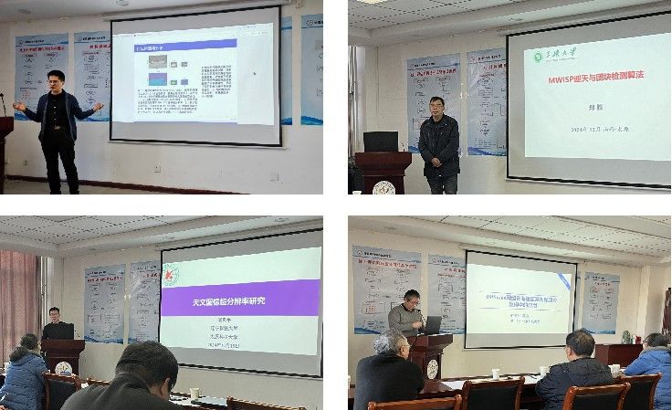华南师范大学李乡儒教授、三峡大学郑胜教授、辽宁科技大学屠良平教授和北京科技大学邱波教授分别做了题为“微特征问题、学习及其应用”“MWISP巡天与团块检测算法”“天文图像超分辨率研究”和“Diffusion网络在海量星系图像超分重构中的应用”的主题报告。