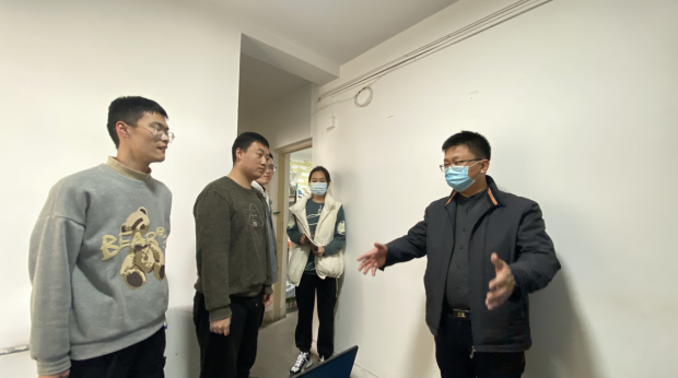 自11月9日以来,龙8在线登录官网-龙8(中国)党委书记宋仁旺、院长崔志华、党委副书记裴小亮、副院长潘理虎每天带领学工队伍深入主校区和西校区研究生、本科生宿舍,走访宣讲中共中央、省、市、学校防疫政策及宿舍安全知识,实地了解同学们的线上学习情况、心理建设和生活状况等,为学生送去关心和温暖。