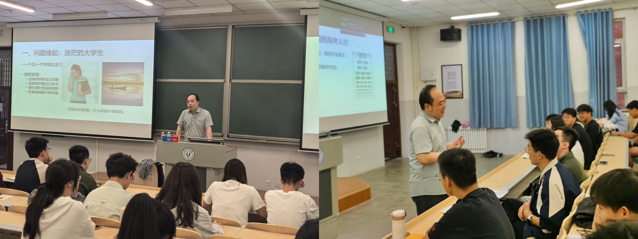 讲座伊始,张睆副教授直指当代大学生迷茫痛点,指出对“生命意义”思考不足是大学生迷茫感滋生的根源所在。在认知层面,他强调构建正确认知框架对大学生活的关键意义,鼓励通过经典阅读汲取思想资源、借助朋辈对话打破认知茧房,不断完善认知体系。在成长价值观层面,他倡导同学们通过志愿服务等实践,在承担社会责任中锚定自我价值。